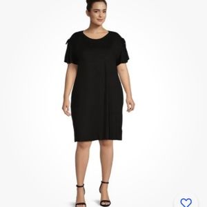 Terra and Sky Women’s Plus Size Black Ruched Shoulder Knit Dress 2X (20W-22W)