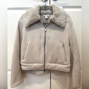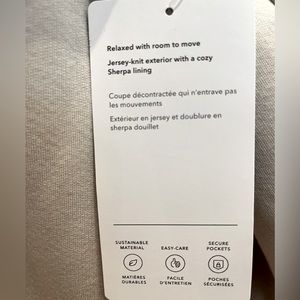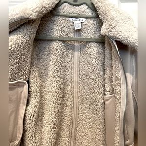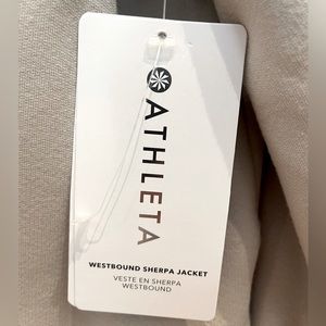 This Athleta Westbound Sherpa Jacket is super cozy, with a Sherpa lining throughout the jacket, even the sleeves. Two zipped exterior pockets. Never worn, new with tags.