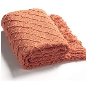Orange/Coral Bohemian Tassel Knit Throw Cozy Fringe Patterned Farmhouse Blanket