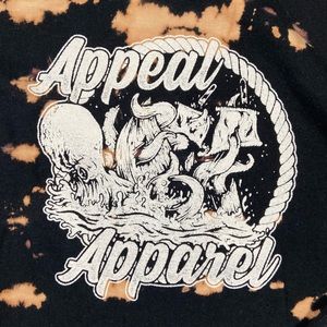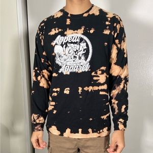 Super cool long-sleeved tee. Black with bleached tie-dye detailing. Says Appeal Apparel across the front in white. Worn once or twice, no flaws. Size medium. Message me with questions!