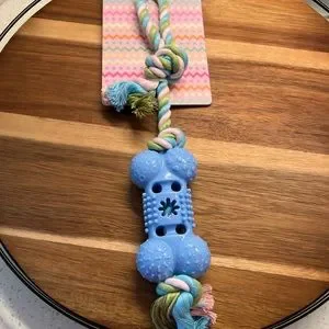 Grab this basket for your dog for Easter. Includes Easter bunny tennis balls, tug toy, fuzzy duck squeaky toy and a bunny themed ice cube tray. Make ice cubes or your favorite homemade treats.