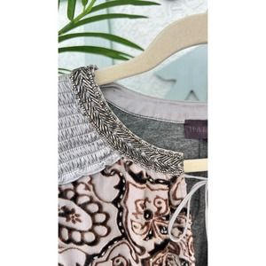 Hale Bob Gray Beaded Collar Velvet Burnout Blouse - Size Small