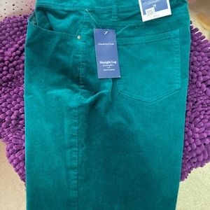 straight leg, tummy slimming, inseam is 31 inches. Very soft and comfortable wearing pants.