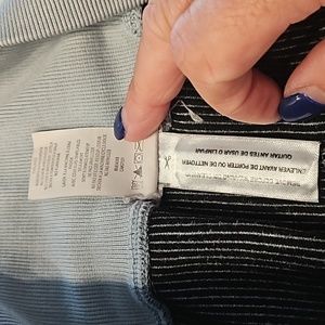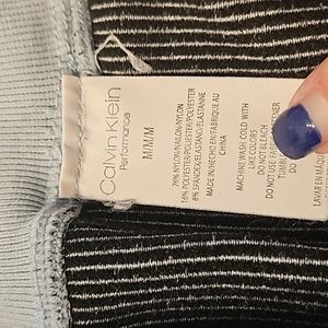 Calvin Klein Performance Set. Used, great condition. A small mark on back, a last pic. Color: light blue with black vertical ribbed. Size: M. Top is missing tag, but i believe they are both medium. See pics for measurements. Such a comfy and adorable workout set!