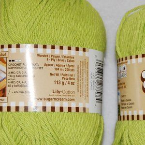 Lot of 2 Skeins, Lily Sugar'n Cream, 100% Cotton Yarn, Hot Green