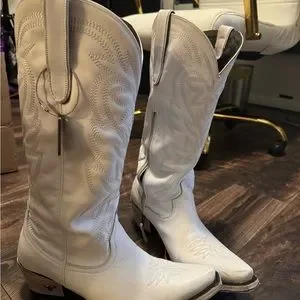 Only worn once, one scuff on left boot. Bottoms have been protected to preserve the turquoise color