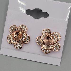 Flower Earrings Made w/ Swarovski Crystals Rose Gold Overlay NWOT
