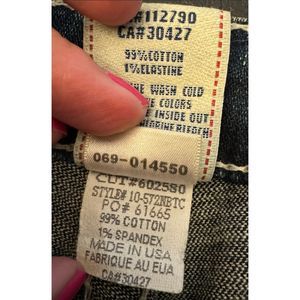 The crystals on these are gorgeous. They're on the front closure, the front pockets and the back pockets. There is some wear at the bottom of the legs shown in pics. Otherwise, really good condition. See pics for measurements. Size 29.