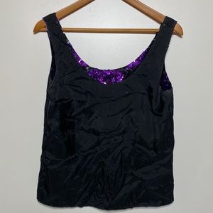 Vintage Silk Niteline Sequin Purple and Black Tank Top