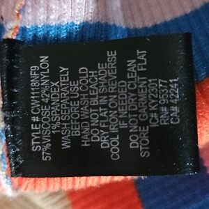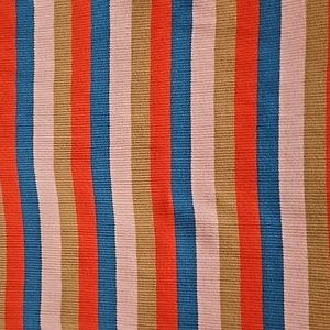 Made from a lightweight and ribbed compression fabric with a multi-colored stripe design.