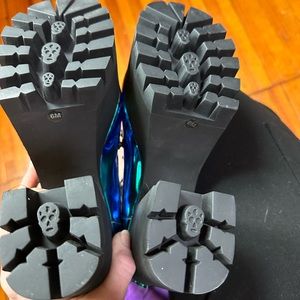 Rare boot metallic teal moonstone heel platform current mood rave festival edm