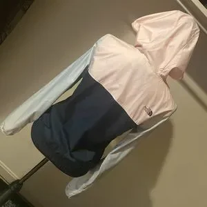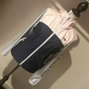 THE NORTH FACE Women’s Windbreaker Navy Blue/Pink/Silver Size Small