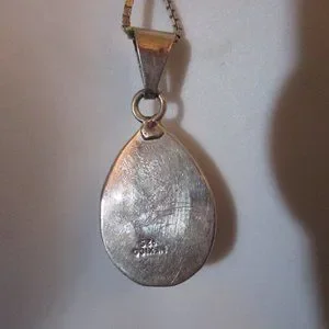 925 STERLING SILVER PINK STONE GLASS Teardrop Southwestern Native Necklace