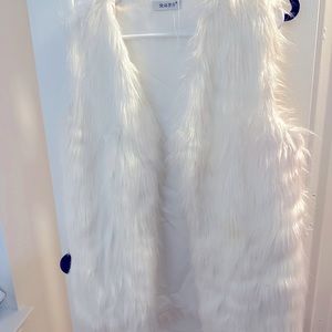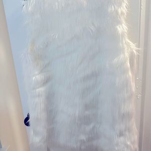 White furry faux fur shaggy vest. Minor stain on the lining not visible when worn