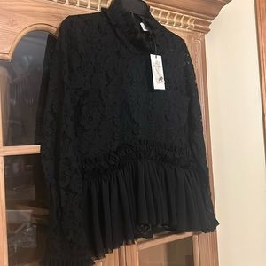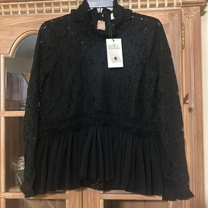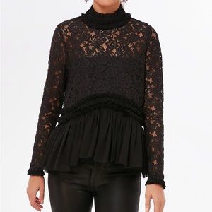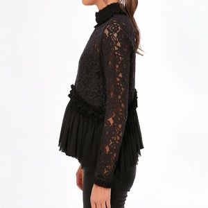 Oo-la-la, we cannot get enough of the Black Lace Myla Top. Ruffles and lace details come together for the perfect feminine silhouette and a drop waist adds movement to this flirty number. In an allover sleek black colorway, this glamorous style pairs well with everything from leather trousers to mini skirts. Perfect for office holiday parties or festive celebrations with friends and family, you are sure to be the best dressed.