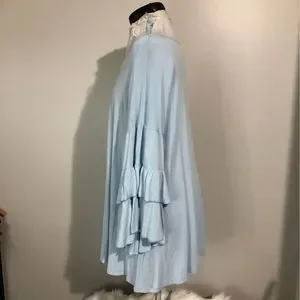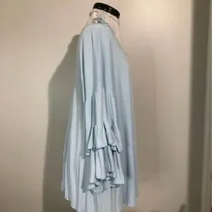 3X R Rouge Boutique Long Ruffled Sleeves Light Blue Blouse Key Hole Front Women