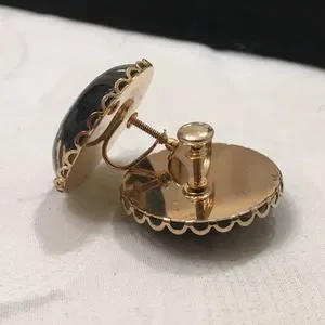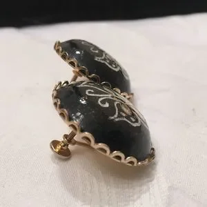 Vintage enamel butterfly button style screw back earrings. Slight enamel loss, but not noticeable when worn. Earrings measure 1 1/4 inches in diameter.