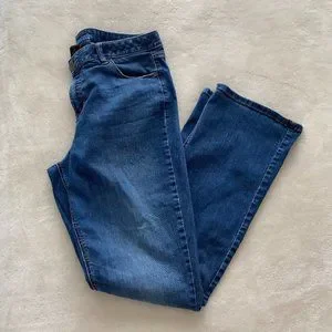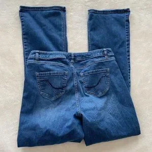 Gently worn Lane Bryant Bootcut Genius Fit jeans. These 16 LONG pants are mostly cotton with a bit of comfortable stretch. Some minor distressing, wispy lines at the thighs. Washed denim.