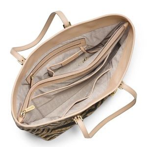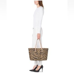 MICHAEL KORS Jet Set Travel MD Tote Brown Signature Tiger Stripe PVC