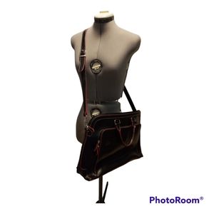 Lodis Audrey Black and Red Large Crossbody Leather Briefcase Laptop Bag