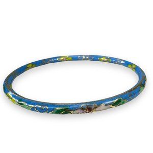 Vintage Cloissone Enamel Bangle Blue Pink Floral 7.75”
