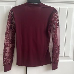 NWT Adiva burgundy top with sheer sleeves. Ruched at waist for a perfect fit. Tag fell off so I reattached. Never worn. Size small