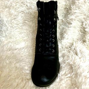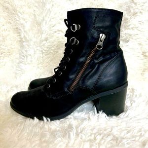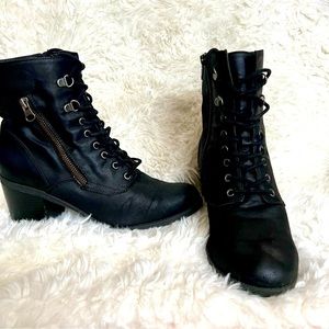 White Mountain Dorian Black Lace Up Side zip Heeled Combat Boots Sz 9.5