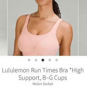Lululemon Run Times High Support Bra Melon Sorbet Size 34DD