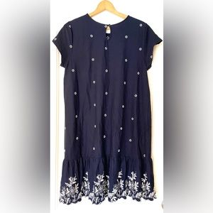 J. Jill Womens Cottage Core Embroidered Floral Print Sheath Dress Blue Sz Medium