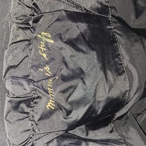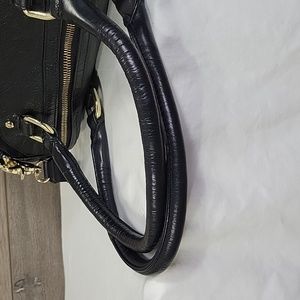 Gold tone hardware. Bag has 1 outside zipper pocket and corner slip pockets.