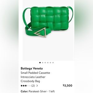 Ladies!!! Embrace the freshness of Spring with this stunning designer bag in Peacock Green! This Bottega Veneta Cassette bag is the perfect accessory to elevate your wardrobe and make a statement! This bag is brand new, never used!! Comes with sleeper! It’s time to treat yourself!! Make an offer!!!