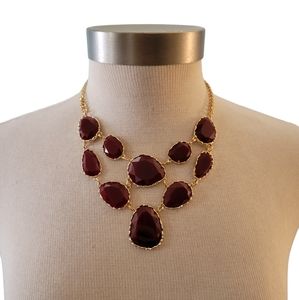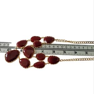 blood red and gold tone necklace. lobster claw closure. 16" + 3" extender. plastic faceted beads. little wear on gold.