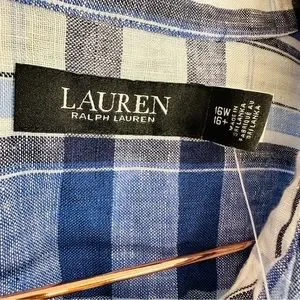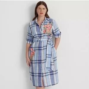 New Ralph Lauren Floral & Plaid Lightweight Linen Button Down Shirtdress Midi