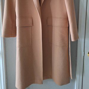 Ann Taylor Beautiful Salmon Pink Long Wrap Coat, Early Winter into Spring, Cotton Blend, Bottom Side Slits 11 1/2", 2 Front Flap Pockets, L 48 1/2" . Size XL