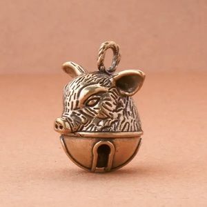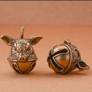 Even cooler and funkier in person! Vintage antique style pig Bell. This is wonderful sounding bell charm that can be worn as a pendant/necklace. I’ve also been told that it is good luck to have a bell when you are on a motorcycle. So this is the perfect keychain charm.