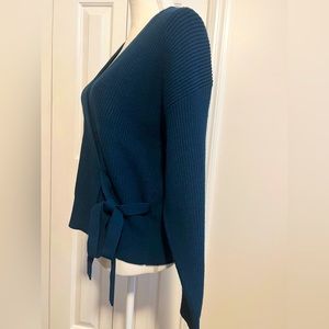 Marc New York Women’s Faux Wrap Ribbed Knit Sweater Size L in Teal Blue