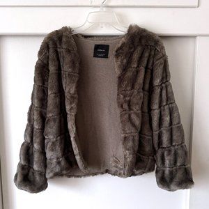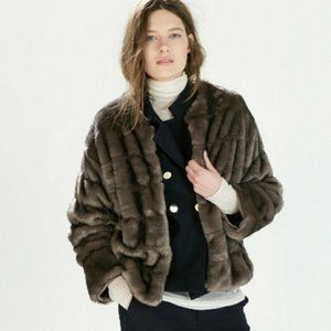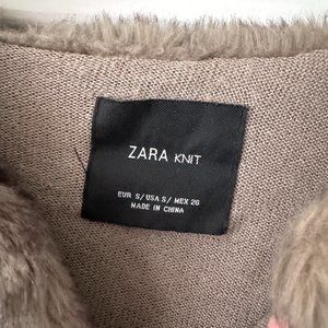 ZARA Knit Super Soft Gray Brown Faux Fur Jacket Coat Size Small