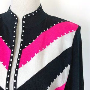 Ming Wang Open Front Knit Cardigan Career Black White Pink Medium