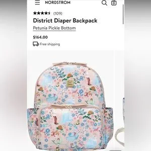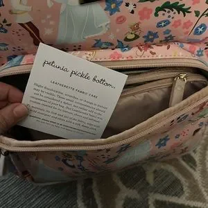 This hands-free diaper bag with sleek quilting keeps you ready at a moment's notice thanks to an interior large enough to stash everything baby needs. From an included water-resistant and washable changing pad to a Petunia Pickle Bottom wipes case to a packing cube and removable bottle holder, you're sure to have a worry-free day of adventures.