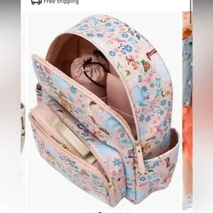 •Includes washable changing pad, packing cube and drawstring bottle holder, integrated stroller clips