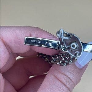 Hermes H logo Filou Chain Glove Holder Clip Silver Tone