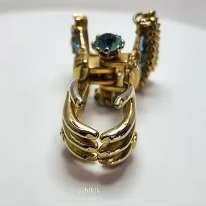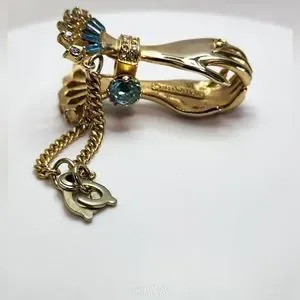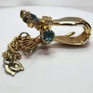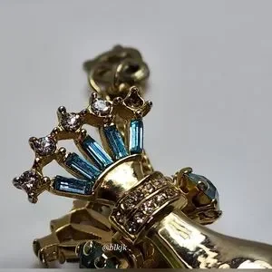 Gold tone with blue and white rhinestones