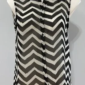 H&M Sleeveless Blouse Black White Chevron Pattern