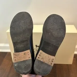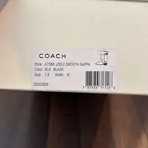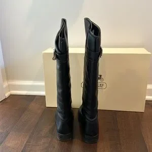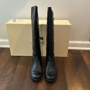 EUC Coach knee high black leather boots. Pull on style with a silver buckle near the top. For reference I’m 5’6” and they come to my knee. They still have a lot of life left in them.