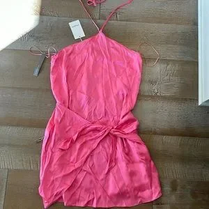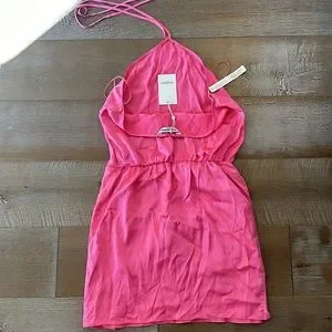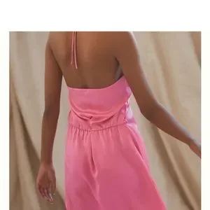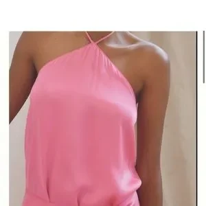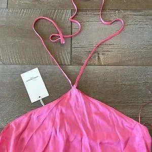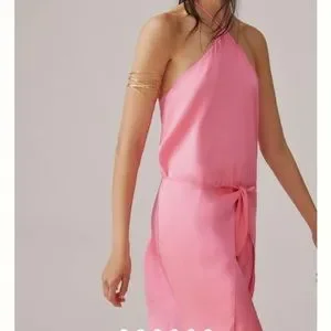 Pink silk halter anthroplogie dress silk ties at waist size small new with tags