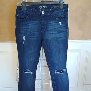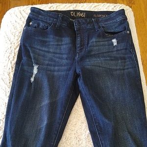 DL1961 Florence insta sculpt Jeans with distress throughout. Five pockets jeans with front zipper closure.