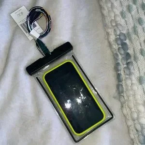This Vera Bradley waterproof phone case is brand new with tags and will fit at least a iPhone 13 (or size 6in x3in.). Lanyard is still all wrapped up but it’s printed with one of the label’s signature paisley patterns.
