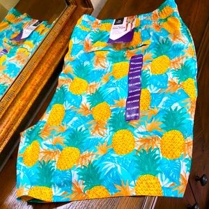 New Men’s resort swim trunk. Size XXL. Tropical plants and pineapples.