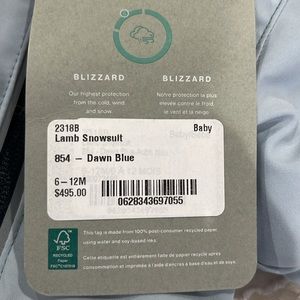 Brand New with Tags and receipt of purchase at the NYC store. Never worn. Baby blue snow suite. So cute!