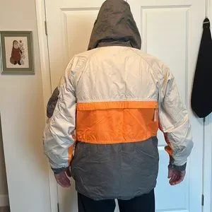 Great condition snowboarding jacket no rips or tears zippers all function, hood fits over helmet, keeps you very warm. Worn only a handful of times